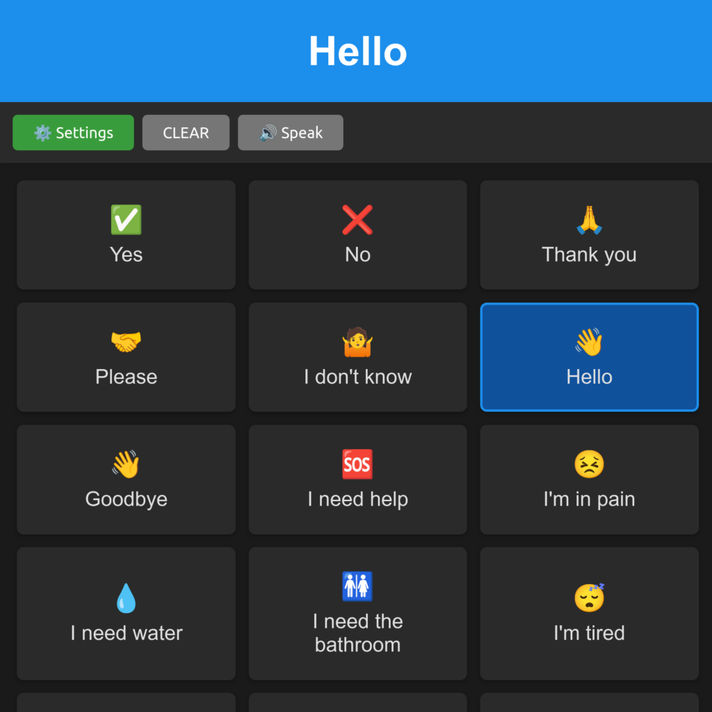 So I put together a web app connected to a game controller, in a way that he could just select phrases from a list to communicate. Luckily this person got better quickly, and this app was no longer needed, but I decided to improve this experiment and publish it as an Open Source project.